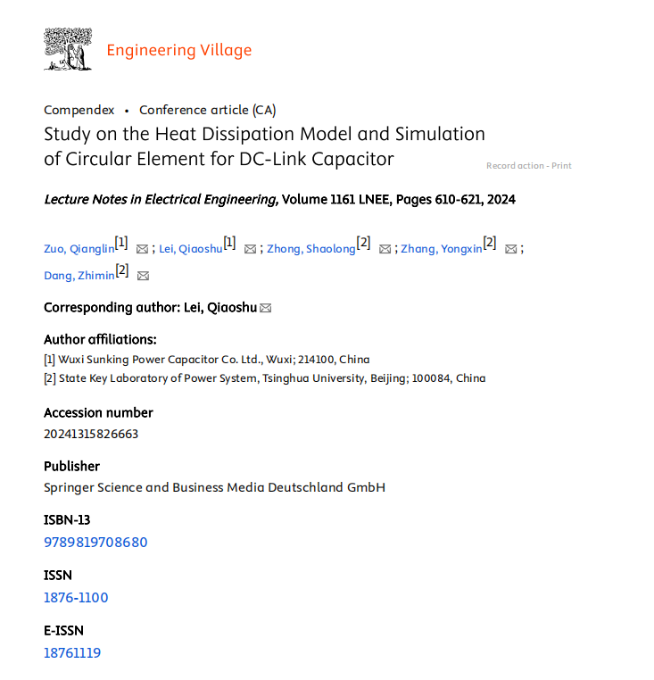 近日,多多28集团有限公司(以下简称“多多28”)成员企业无锡赛晶电力电容器有限公司(以下简称“无锡赛晶”)的技术成果论文被EI(工程索引)收录。EI作为国际权威的工程技术领域学术出版机构之一,专门收录工程与科技领域的高质量文献,意味着多多28在电力电容器领域的技术研究和创新能力得到了国际权威认可。