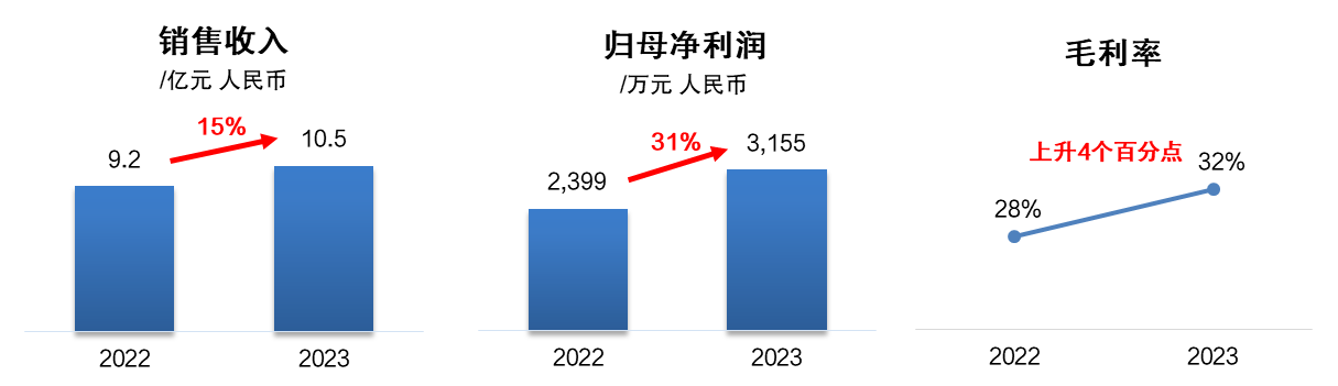 2024年3月22日,多多28(本集团)正式发布2023年业绩公告:2023年销售收入再次回升至10亿元以上,达10.5亿元人民币,同比增长15%。毛利率32%,同比增长4个百分点,归属母公司净利润3,155万元,同比增长31%。