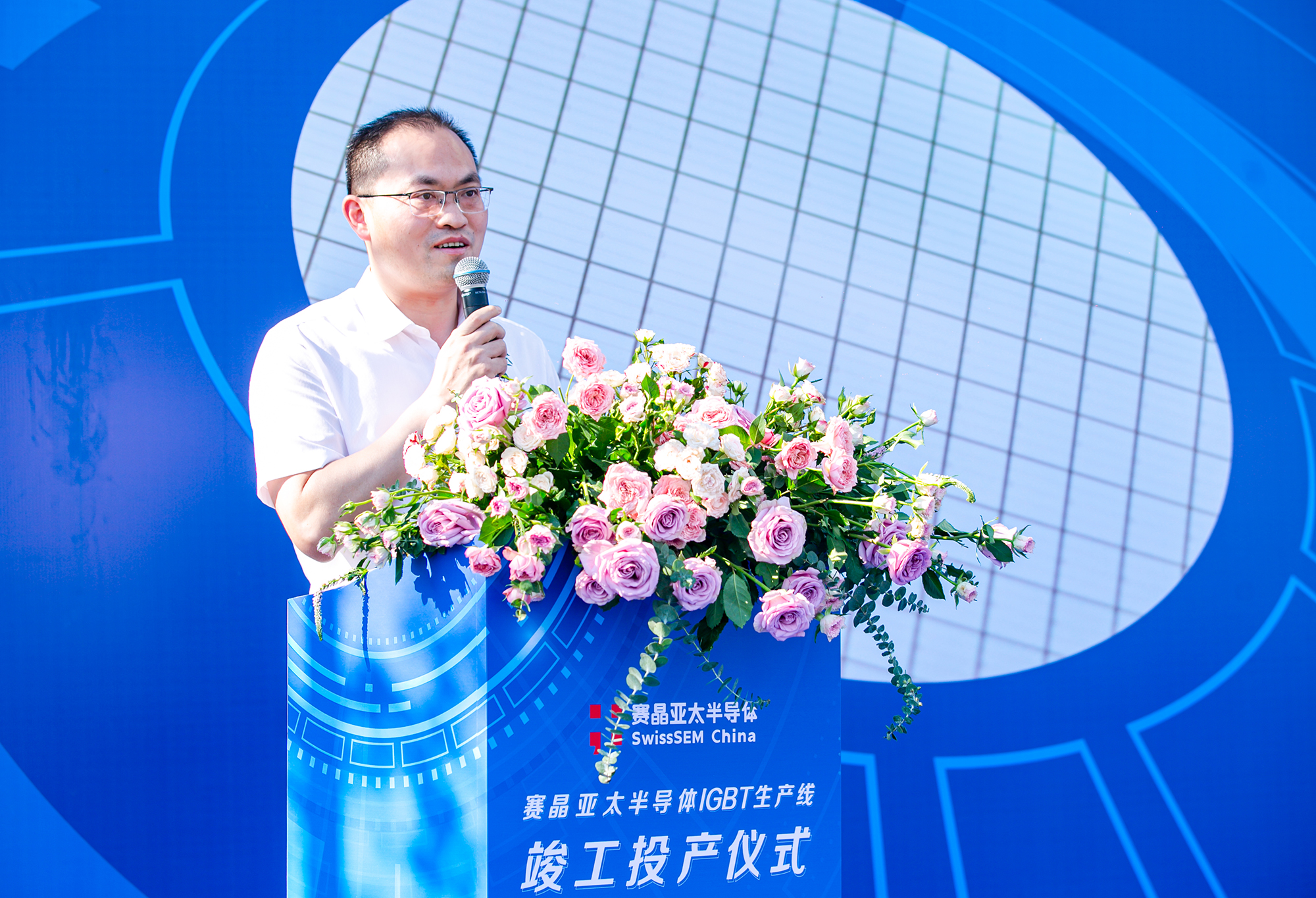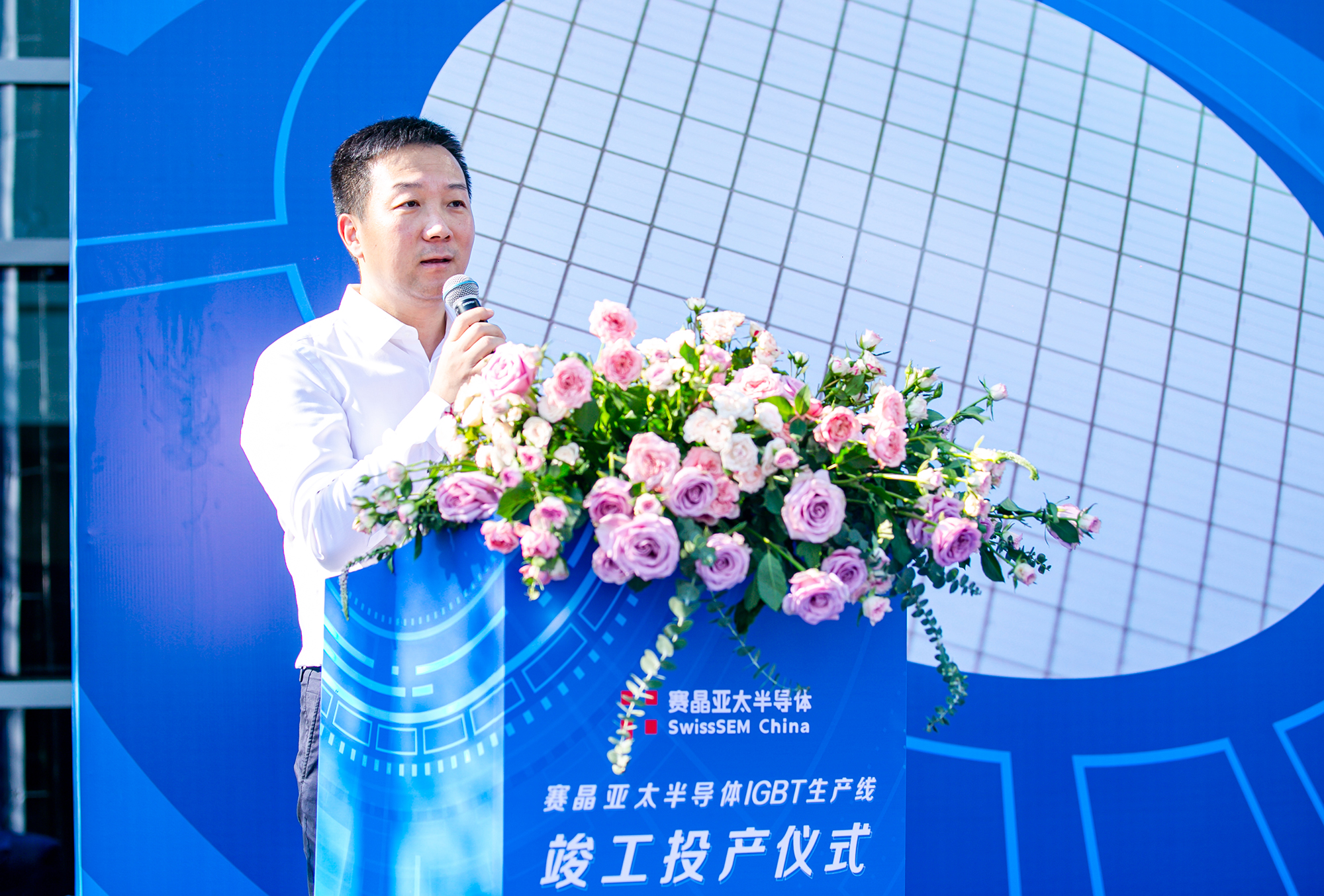 中共嘉兴市委常委、嘉善县委书记洪湖鹏在致辞中表示,在中国共产党建党一百周年前夕,举行赛晶亚太半导体IGBT生产线竣工投产仪式,不仅是对赛晶,对于嘉善也是里程碑式的意义。嘉善肩负着“双示范”建设的重大使命,集县域科学发展示范点和长三角生态绿色一体化发展示范区两大国家战略于一身,正处于千载难逢的重大历史机遇期。面对百年未有之机遇,嘉善正以迭代升级、再造嘉善的雄心和气魄,争创社会主义现代化先行示范区。为实现这一目标,全县上下全力做好“产业+科技+人才+政策+服务”五篇文章。赛晶亚太IGBT大功率半导体项目作为嘉善发展数字经济领域引进的头部企业,对嘉善数字经济发展具有里程碑意义。希望借助赛晶亚太IGBT等优质项目的带动,借势借力,努力引进更多优质的集成电路企业,逐步完善产业链。