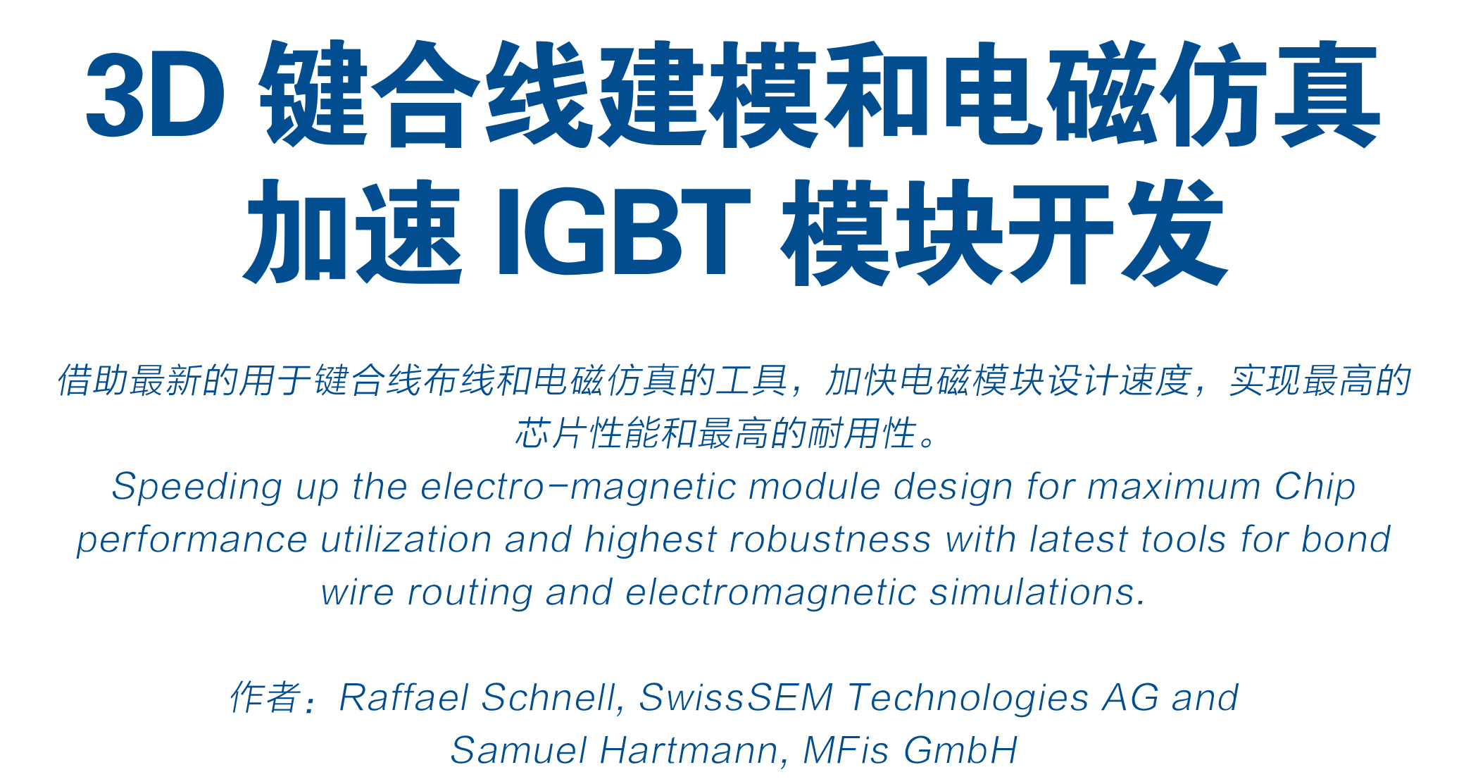 当今用于热和电磁仿真的仿真工具非常强大,可以明显缩短开发时间并显著提高IGBT模块设计质量。但是为获得最佳结果,有限元仿真的输入必须尽可能地准确,且需反映最终实际产品的设计情况。特别是是对于诸如引线键合之类的复杂细节,其CAD建模繁琐且复杂,乍一看简单的简化非常有利。但是,结果的准确性会受到简化的影响,并且仿真工具的全部潜力没有充分利用。