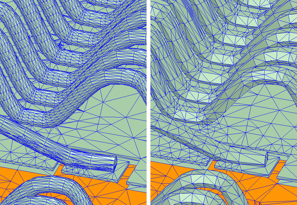 图2:基于Ansys Q3D对具有圆形和六角形横截面的键合线进行网格剖分的结果