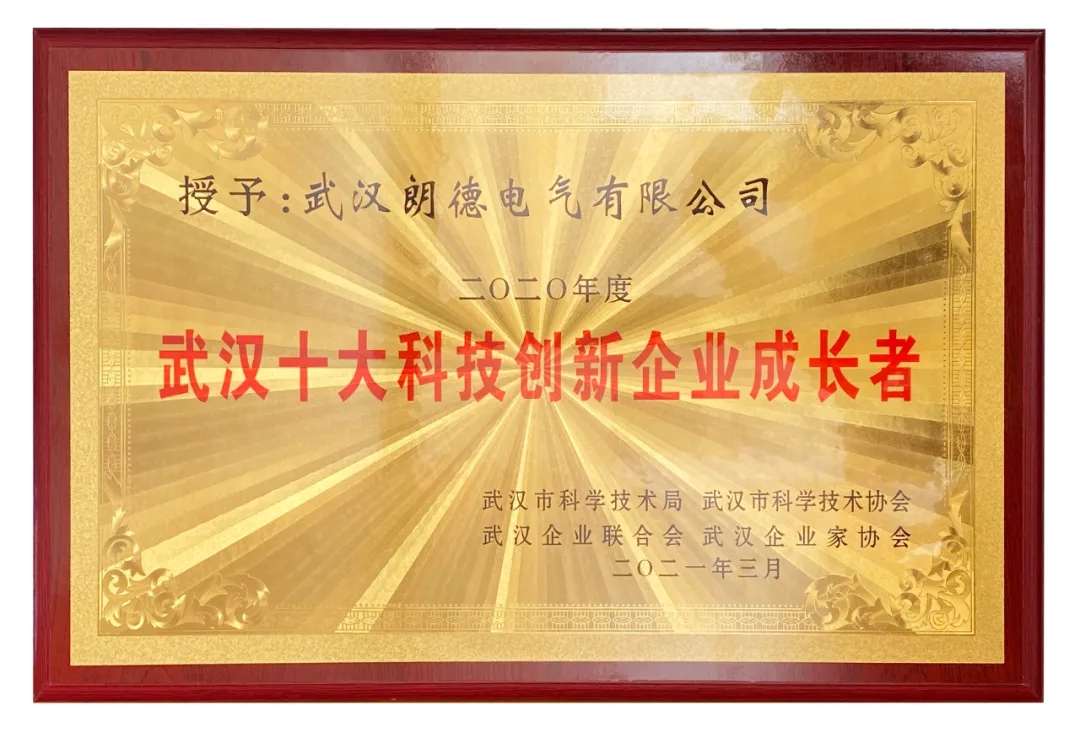 4月15日,由武汉市科技局、武汉市科学技术协会、武汉企业联合会、武汉企业家协会主办,武汉科技成果转化服务中心、武汉科技报社、武汉科技传播研究会承办的“武汉科技创新领跑者”活动举行颁奖典礼,朗德电气凭借自主创新优势,领先的技术体系与产品,获得武汉十大科技创新企业成长者奖。