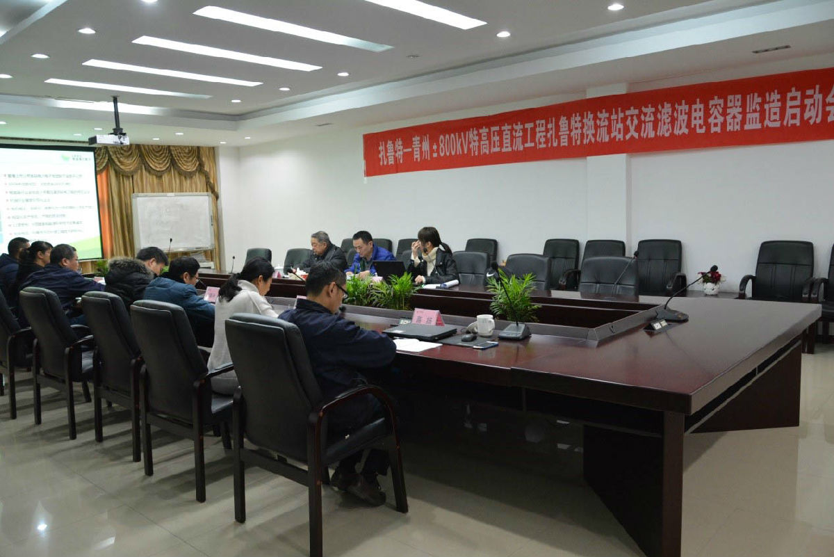2017年2月9日,扎鲁特-青州±800kV特高压直流输电工程扎鲁特换流站监造启动会在无锡赛晶电力电容器有限公司顺利召开。国网监造专家李学芳、韩海银、武炬臻出席了本次监造启动会,无锡赛晶公司总经理左强林、副总经理黄葵、副总经理耿峰、副总经理李承通及相关部门负责人等共同参加了本次会议。