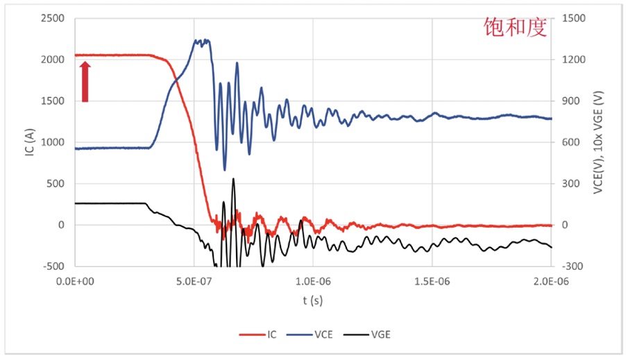 增加电流IC=1500A (=2.5倍标称)2000A (>3倍),VDC=800V