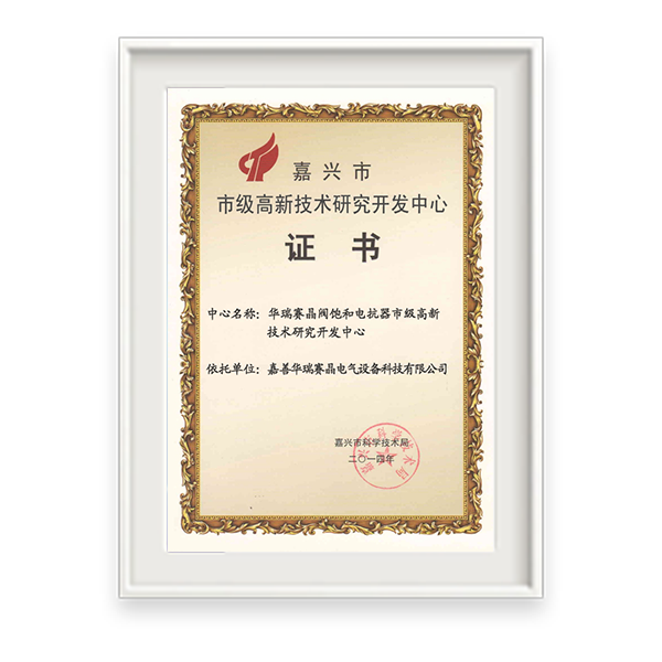 ●2015年9月 获评省级高新技术企业研究开发中心